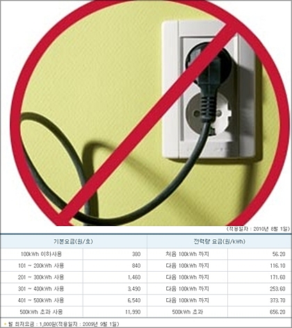 °¡Á¤¿ë Àü±â¿ä±Ý ´©Áø¼¼´Â óÀ½ 100kwh±îÁö´Â 56.20¿ø/kwhÀÌÁö¸¸ 500kwh Ãʰú½Ã 656.20¿ø/kwh´Ù. »ç¿ë·®º¸´Ù Àü±â¿ä±ÝÀÌ ´õ ºü¸¥ ¼Óµµ·Î ´Ã¾î³´Ù.
